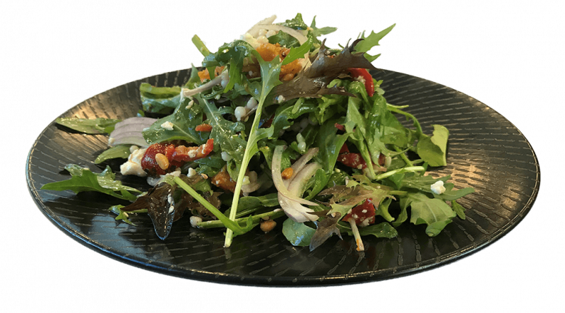 Grilled halloumi, pumpkin, avocado, red onion, caramelised pistachios, green leaf, hommus & lemon dressing.