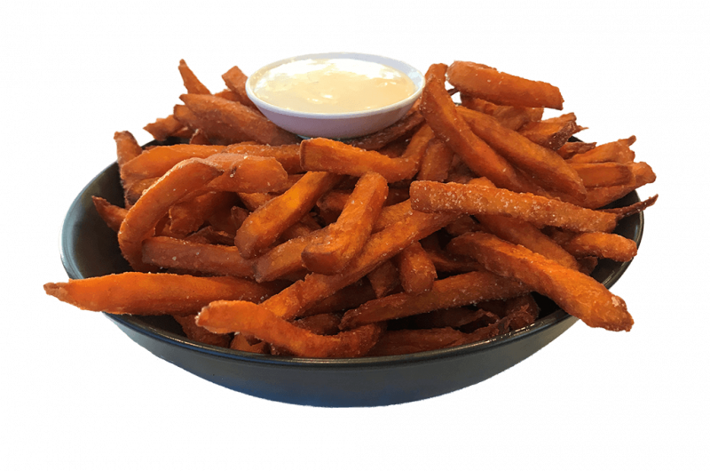 Grilled halloumi, avocado smash, red onion, tomato, spinach, siracha mayo, aioli with sweet potato chips.